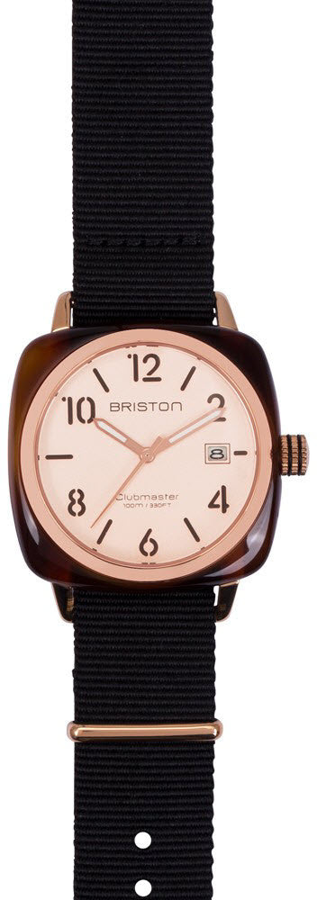 Briston Watch Clubmaster Classic Icons 14240.PRA.T.6.NB. It is this spirit, combined with its watchmaking DNA, that gives Briston watches its unique style. Working with innovative materials, such as cellulose acetate, and colours give Briston watches their distinctive look. Briston watches also offers the perfect balance between a contemporary timepiece and a chic accessory, casual but resolutely and thoroughly accessible.
