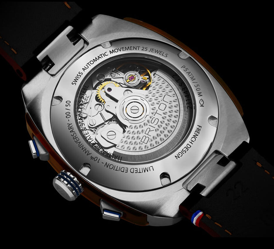 Briston Watch Streamliner Urban 10th Anniversary White Limited Edition 231443.S.T.2.LABR. Briston celebrates its 10th anniversary! To celebrate this unique event in the life of the French brand, Briston is offering its first Automatic Chronograph model in a Swiss Made Limited Series. This Streamliner Urban 10th Anniversary watch embodies all the codes that are dear to watch collectors.