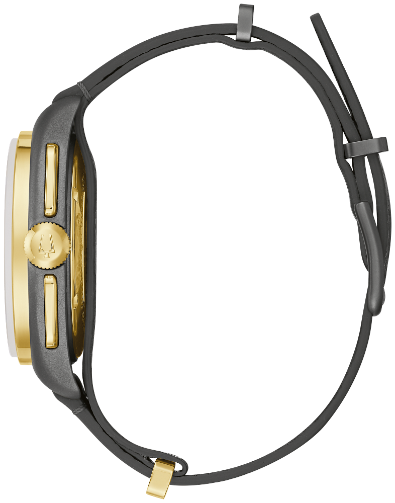 The case back of the Bulova Lunar Pilot 50th Anniversary Limited Edition commemorates the historic occasion with a stunning engraving featuring the image of an astronaut and special printed lettering marking its limited edition status. Hidden behind the case back is Bulova’s proprietary high-performance quartz movement, a calibre that can impressively attest to an accuracy of +/- 10 seconds per year. It also ensures a rare sweeping hand for the chronograph seconds. The chronograph seconds hand is dressed in gold to match the three subsidiary dials and the rest of the watch’s hardware. In contrast, the hour and minute hands are coated in black and treated to glow in the dark Superluminova. The Bulova Lunar Pilot 50th Anniversary is completed by scratch resistant sapphire crystal glass with anti-reflective treatment, a 50 metre water resistant rating and a supple grey leather strap with NATO-style effect secured by a pin buckle.