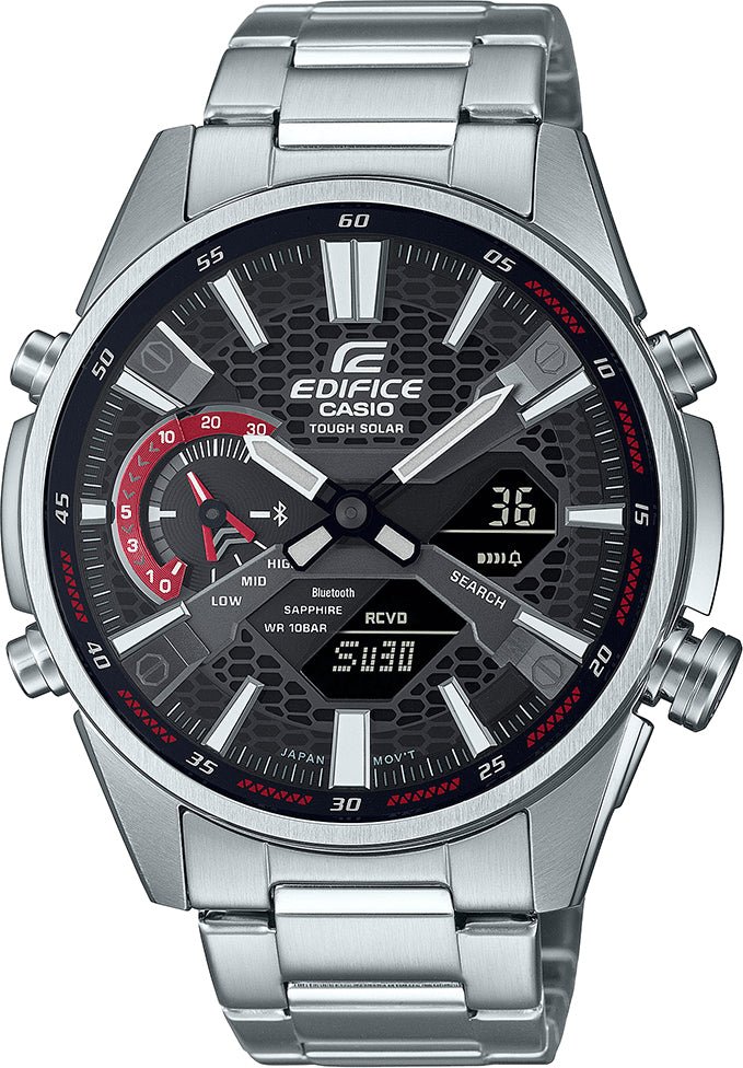Casio Watch Edifice Bluetooth Mens ECB-S100D-1AEF. In terms of technology, Casio watches EDIFICE is one of the most modern watches of it kind. The watches represent the ideal mix of intelligent functionality, innovative technology and sporty elegance. It will not only be racing fans who are won over by EDIFICE functions.