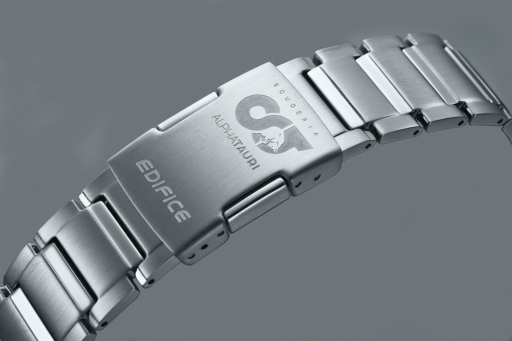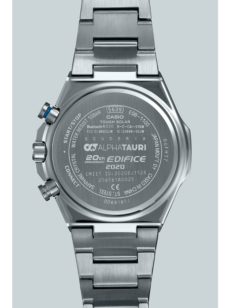 From Casio watches EDIFICE, the high performance motor sports chronograph that is designed and engineered under the concept of Speed and Intelligence, comes the first model designed in collaboration with Scuderia AlphaTauri Formula 1 team. From 2020, Scuderia AlphaTauri became the new name of the Scuderia Toro Rosso racing team.