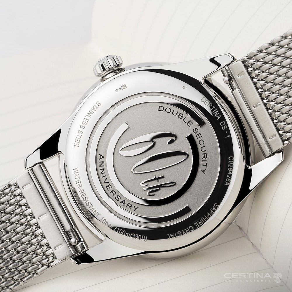 Certina Watch DS-1 Big Date Powermatic 80 Special Edition C0294261109160. Just in time for the 60th anniversary of the DS Concept, the DS-1 Big Date Powermatic 80 Special Edition marks 60 years of Double Security with enhanced resistance thanks to new anti magnetic technology. Sporty and elegant in all respects, with a cool Milanese steel mesh bracelet, superb green dial and easy to read Big Date at 6 o clock.