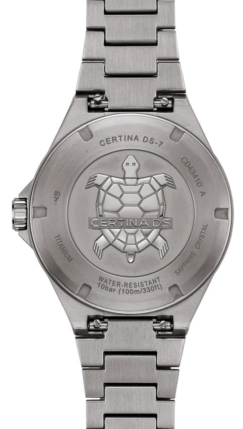 Certina Watch DS-7 Quartz C043.410.44.051.00. The DS-7 brings a sporty look to the wrist, and may bring back memories for connoisseurs of historic watches. The design of the new product line is derived from a model from the 1970s, but has taken on a decisively modern appearance – with dynamic lines, fashionable details and optimal resilience.