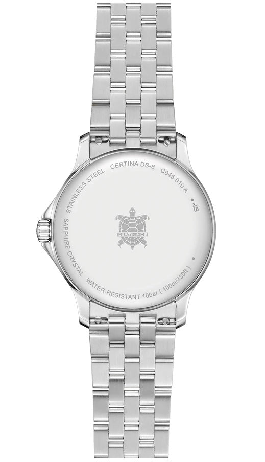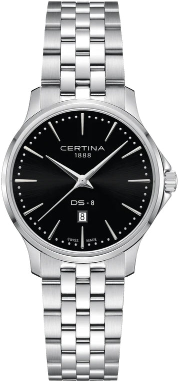 Certina Watch DS-8 Lady 31mm C045.010.11.051.00. The DS-8 Lady 31mm quartz watch features a clean, minimalist design that embodies timeless elegance. With its comfortable wear and versatile style, it seamlessly complements any outfit, making it an ideal everyday accessory.
