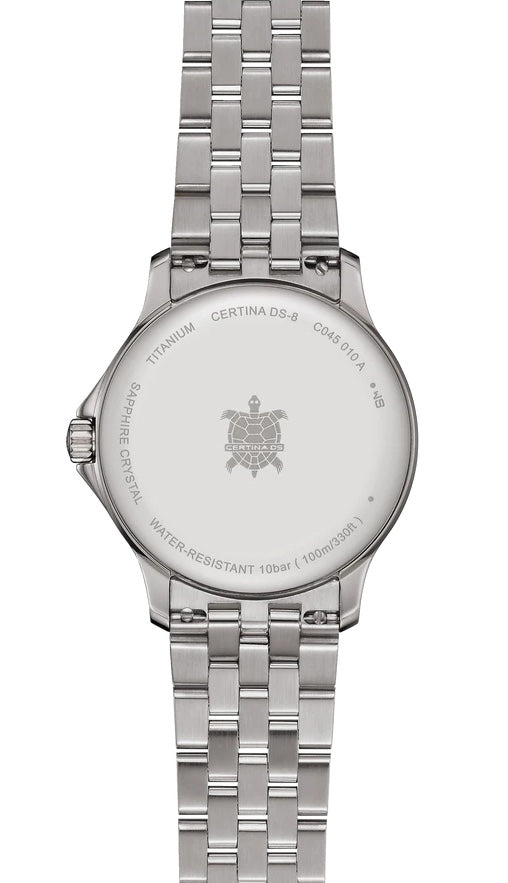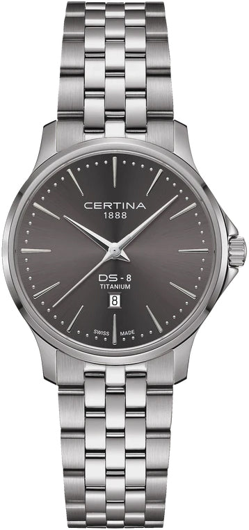 Certina Watch DS-8 Lady 31mm C045.010.44.081.00. The DS-8 Lady 31mm quartz watch features a clean, minimalist design that embodies timeless elegance. With its comfortable wear and versatile style, it seamlessly complements any outfit, making it an ideal everyday accessory.
