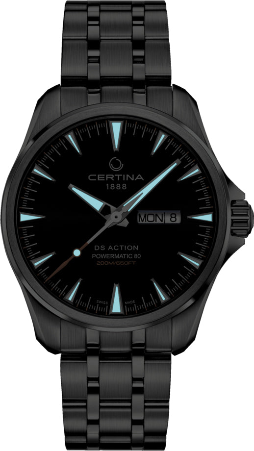 Certina Watch DS Action Day Date Powermatic 80 C032.430.11.041.00. Life is full of surprises,. The DS Action Day-Date Powermatic 80 is equipped to tackle each and every one of them. Offering water resistance to 20 bar, an ultra-modern automatic calibre and the coveted time and date display, this timepiece is sporty and elegant in equal measure.