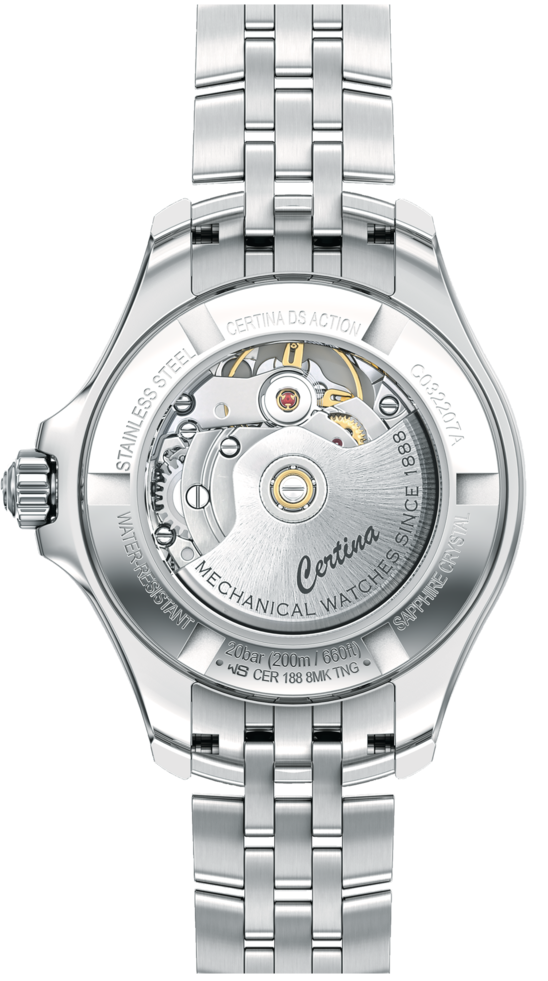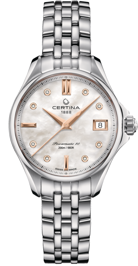 Certina Watch DS Action C032.207.11.116.00. This ladies watch is in a class of its own. Its Powermatic calibre not only has a power reserve of 80 hours, but also features a Nivachron balance spring, guaranteeing reliable precision unaffected by magnetic fields. Sparkling diamonds and sophisticated details ensure timeless elegance.