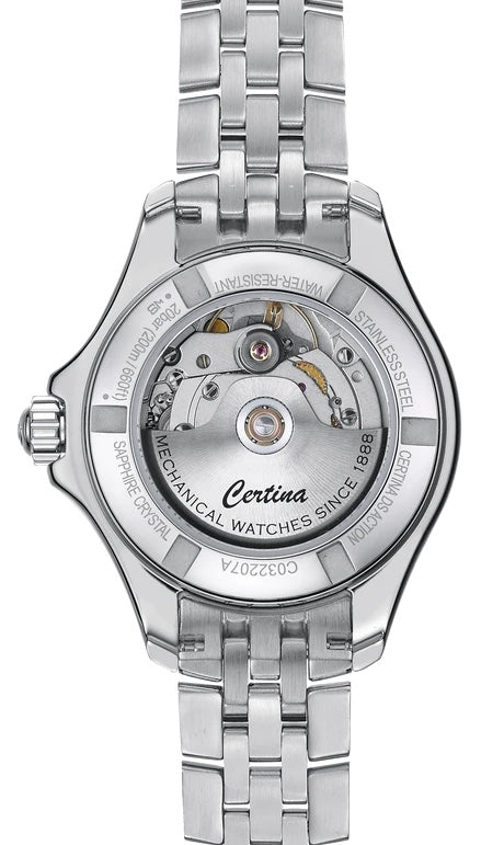 Certina Watch DS Action Lady Powermatic 80 C032.207.11.046.00. This ladies' watch is in a class of its own. Its Powermatic calibre not only has a power reserve of 80 hours, but also features a Nivachron balance spring, guaranteeing reliable precision unaffected by magnetic fields. Sparkling diamonds and sophisticated details ensure timeless elegance.