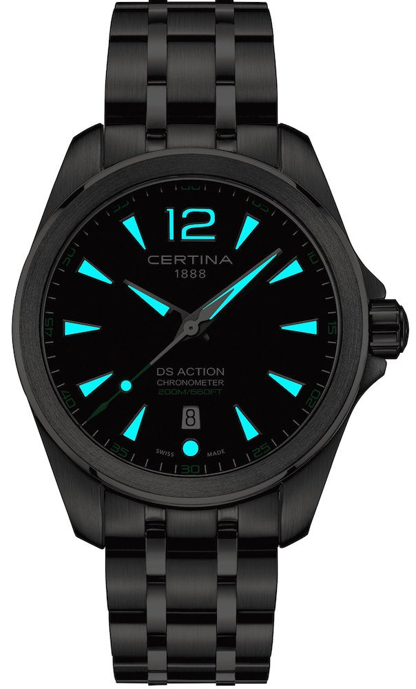 Certina Watch DS Action Mens C032.851.11.057.02. The maritime dimension of the Swiss art of watchmaking: The sporty and elegant three hand model with quartz movement combines water resistance up to 200m with certified chronometer precision, and flawless good looks.