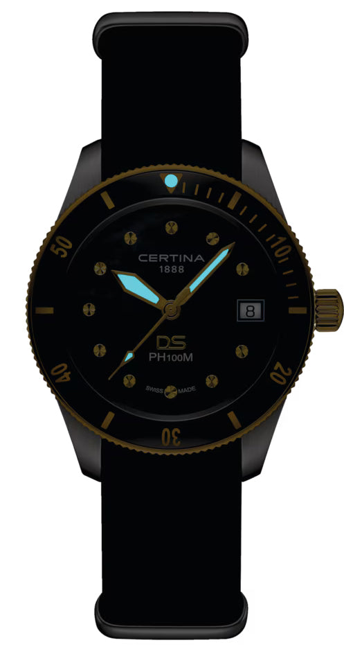 Certina Watch DS PH100M Lady C044.210.26.051.00. The watches in the DS PH collection have a rich heritage. They are the legitimate successors of the extremely robust timepieces of the 1960s which attract attention through their maritime characteristics and sporty, elegant design.