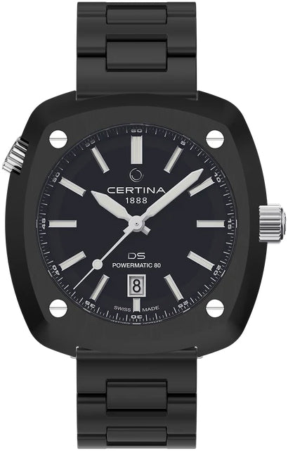 Certina Watch DS+ Powermatic 81 C041.407.39.051.00. With the DS+, Certina celebrates the premiere of a spectacular new watch concept: a timepiece that offers not just a choice of straps, but a range of watch case shapes as well, to be combined to suit your personal preferences. Choose a sporty or a vintage look, a maritime or urban style: thanks to an ingenious three-part design you can easily change the look of the watch, without using any tools and in just a few steps – to suit your current outfit, a special occasion, or just because you feel like it. At the same time, the reliability, solid construction and precision of the mechanical Powermatic 80 movement with Nivachron balance spring remain unchanged. As for the irresistible transformations over time, Certina brings them to the wrist in style, with a timepiece that is more than just a watch, in every respect.