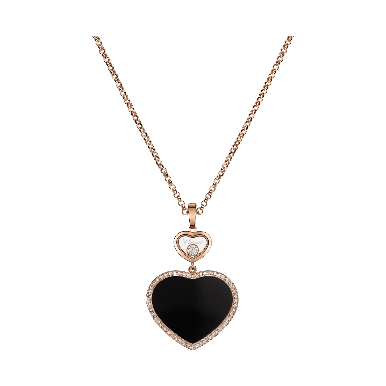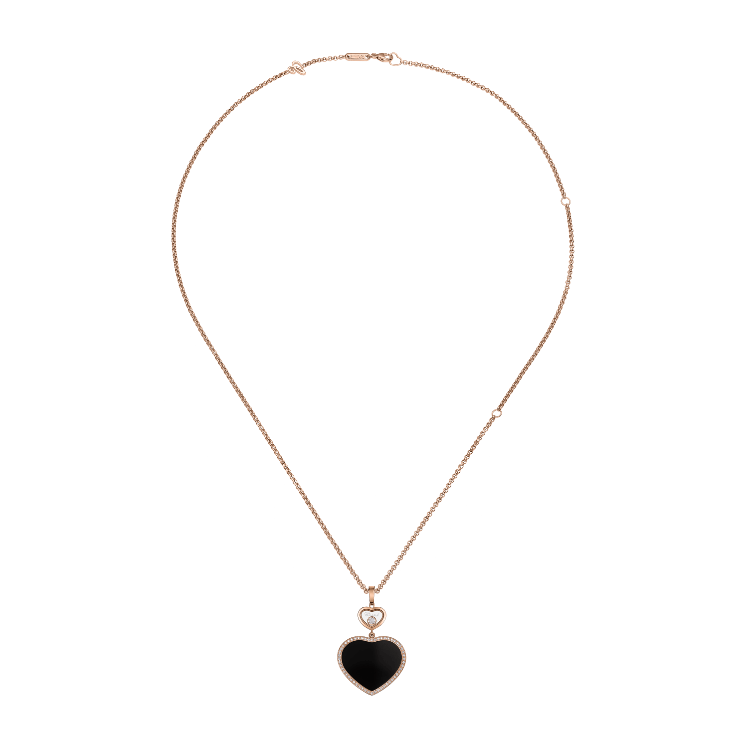 Chopard Happy Hearts 18ct Rose Gold Black Onyx 0.32ct Diamond Necklace 79A075-5291