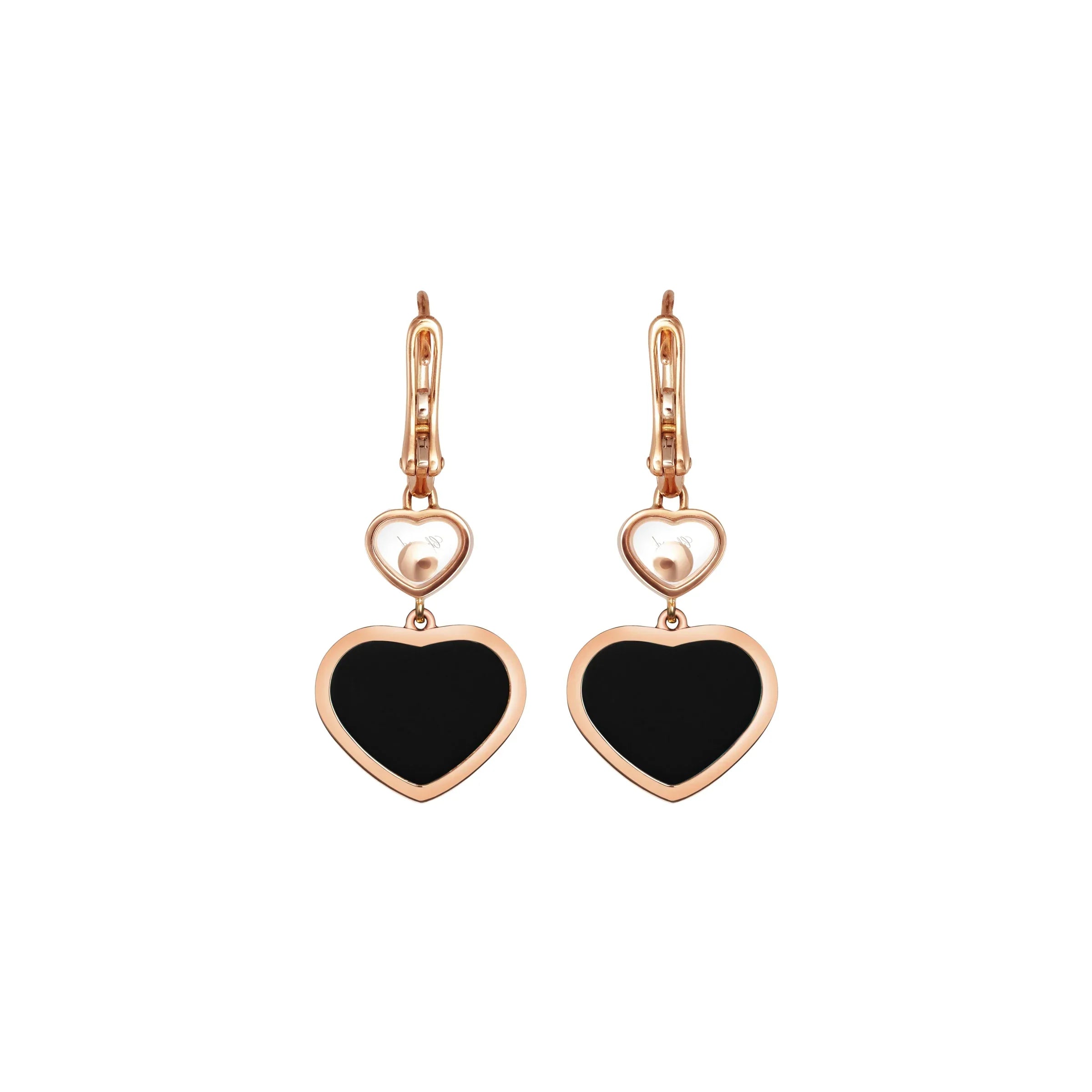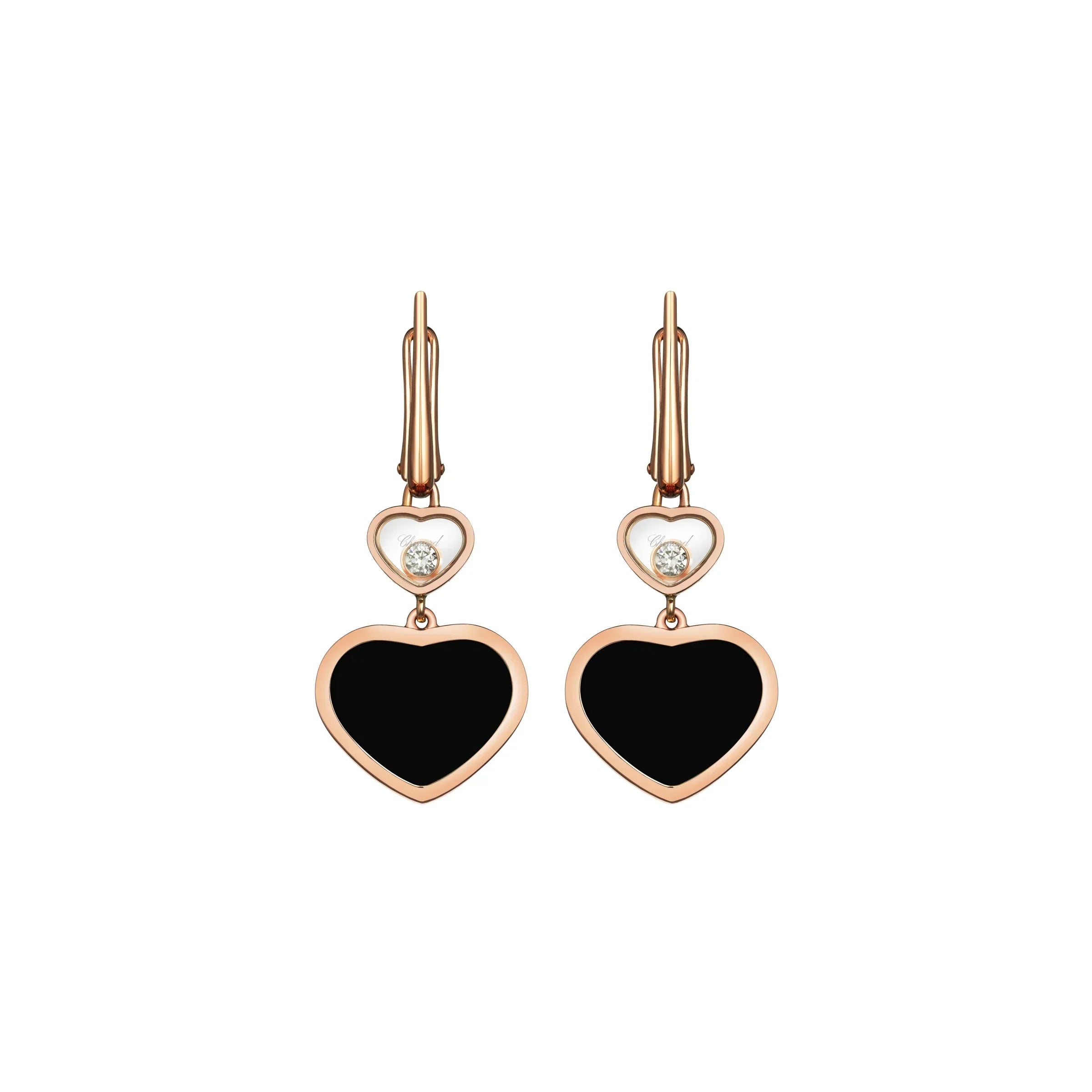 Chopard Happy Hearts 18ct Rose Gold Diamond Onyx Earrings 837482-5210