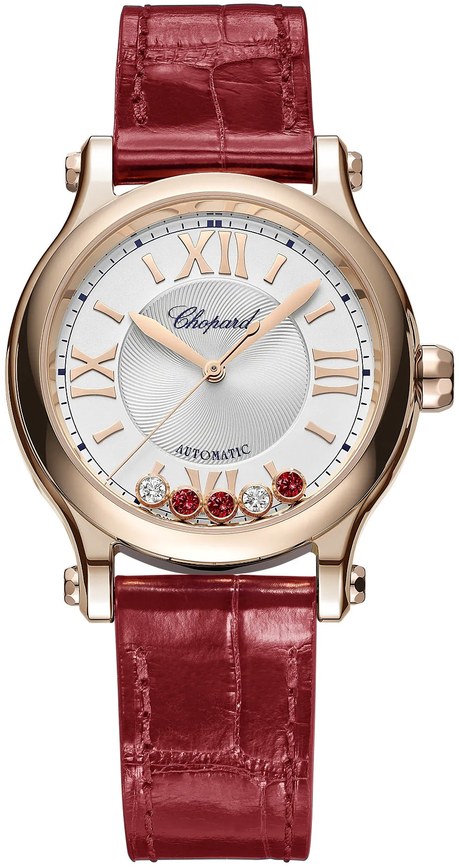 Chopard Watch Happy Sport Rose Gold 275378-5011. Launched in 1993, the Happy Sport model is the first watch to combine diamonds with a stainless steel case. To this day, it remains one of the most iconic and desirable models in the industry. Explore the full range of luxury floating diamond watches for women: gold, white and rose gold diamond watches and stainless steel watches. And discover our quartz luxury watches, automatic watches or prestigious moon-phase watches.