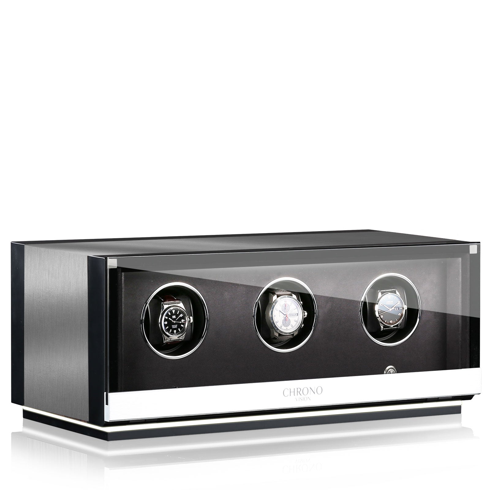 Chronovision Watch Winder Ambiance III Alu Black Silk 70050-150.30.10. Discover our sophisticated range of Chronovision Watch Winders which showcase exceedingly low noise motion, a variety of winding directions, intelligent sleep phase and Bluetooth software. Each Chronovision Watch Winder features a range of settings and functions, which includes a full range of speed settings and options for multi directional rotation.