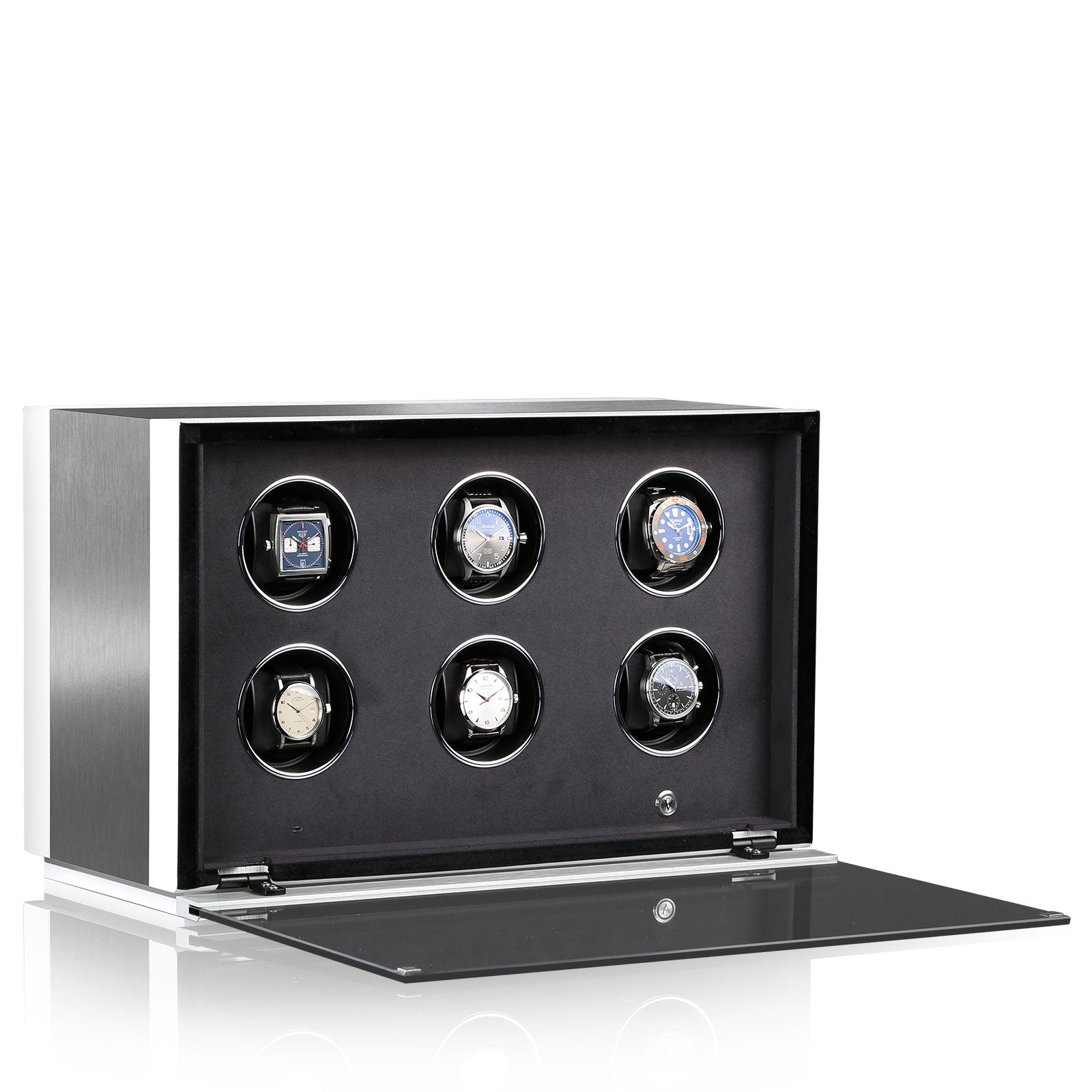 Chronovision Watch Winder Ambiance VI Alu White Silk 70050-152.30.12. Discover our sophisticated range of Chronovision Watch Winders which showcase exceedingly low noise motion, a variety of winding directions, intelligent sleep phase and Bluetooth software. Each Chronovision Watch Winder features a range of settings and functions, which includes a full range of speed settings and options for multi directional rotation.