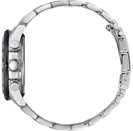 Citizen Watch Eco Drive Chrono A.T WR200 Mens Color. With a passion for speed and accuracy the re-imagined Citizen Perpetual Chrono A.T features radio-controlled atomic clock synchronisation for superior accuracy in 24 time zones. Additional features include a chronograph, perpetual calendar, Dual Times and power reserve indicator. Styled in a stainless steel case and bracelet and black dial for a sleek, sophisticated look. Featuring Citizen Eco-Drive technology, powered by light, any light and never needs a battery.