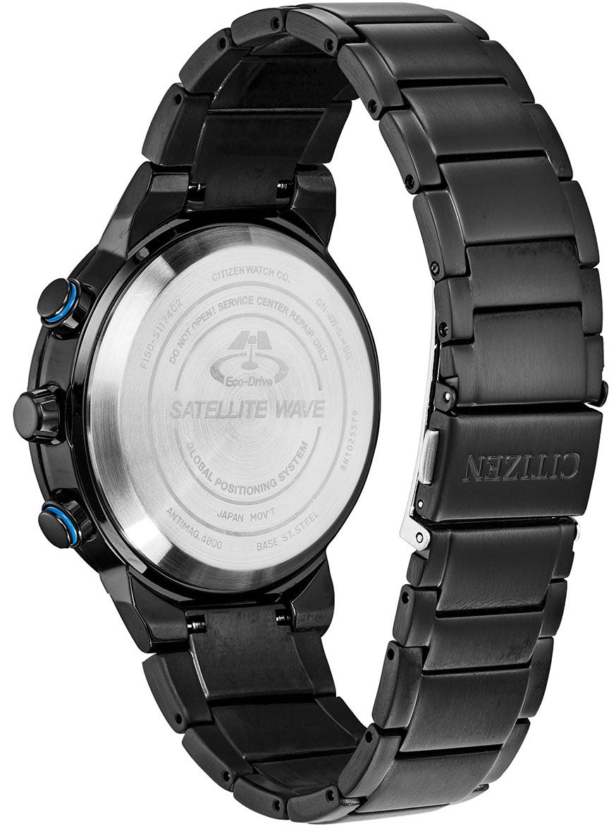 Citizen Watch Eco Drive Satellite Wave GPS Mens Color. Bolder and brighter. Enhanced technical and architectural design; the Citizen Satellite Wave GPS is the leader of the pack with the world's fastest timekeeping signal reception speed from GPS navigation. A sleek Black Ion Plated stainless steel case and bracelet, black dial and brilliant blue accents featured satellite GPS timekeeping technology with worldwide reception and time adjustment in 40 time zones. Powered by Citizen Eco-Drive technology powered by light, any light. Never needs a battery.