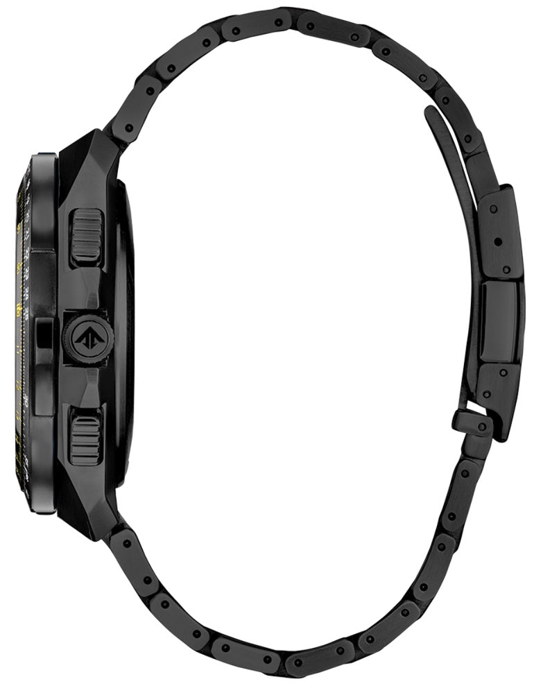 Citizen Watch Eco Drive Skyhawk A.T JY8127-59E. Cutting-edge style thats ready for any adventure, the Skyhawk A.T keeps incredibly precise time with radio-controlled atomic clock synchronisation technology. Styled with a black ion-plated stainless-steel bracelet and black dial with yellow accents for a polished look thatÕs finished with anti-reflective sapphire crystal. Ready for wherever life takes you, this timepiece also features a 1/100 second chronograph that measures up to 24 hours, world time in 43 cities, 12/24 hour time, perpetual calendar, 2 alarms, 99 minute countdown timer, digital display light, dual-time, power reserve indicator, water resistance to 200 metres and our sustainable Eco-Drive technology; powered by light, any light and never needs a battery.