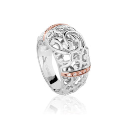 This breathtaking Clogau Am Byth Silver Ring features a stunning silver filigree design with rose gold detailing and exquisite diamonds. All of our Clogau jewellery is delivered in elegant Clogau packaging.