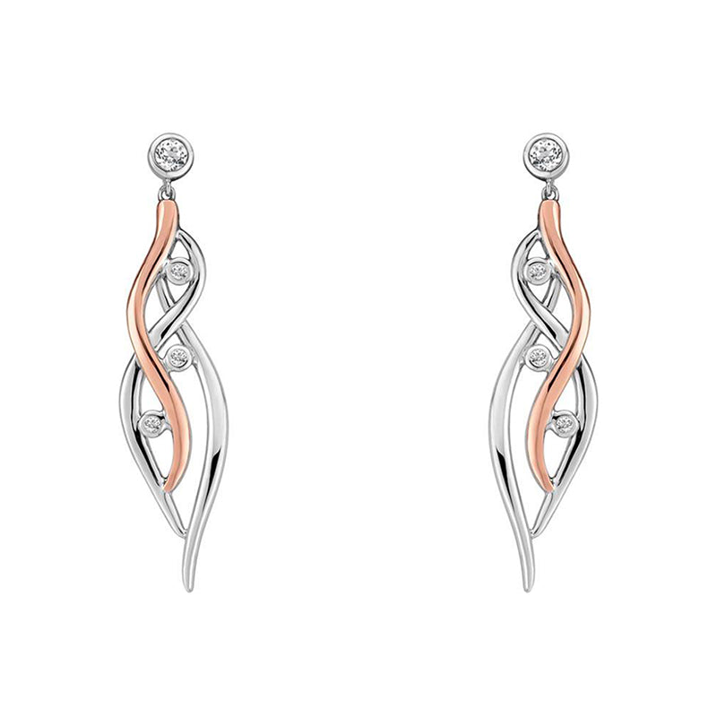 Clogau Swallow Falls Sterling Silver 9ct Rose Gold Drop Earrings - 3SCTWIE (CLG-1374)