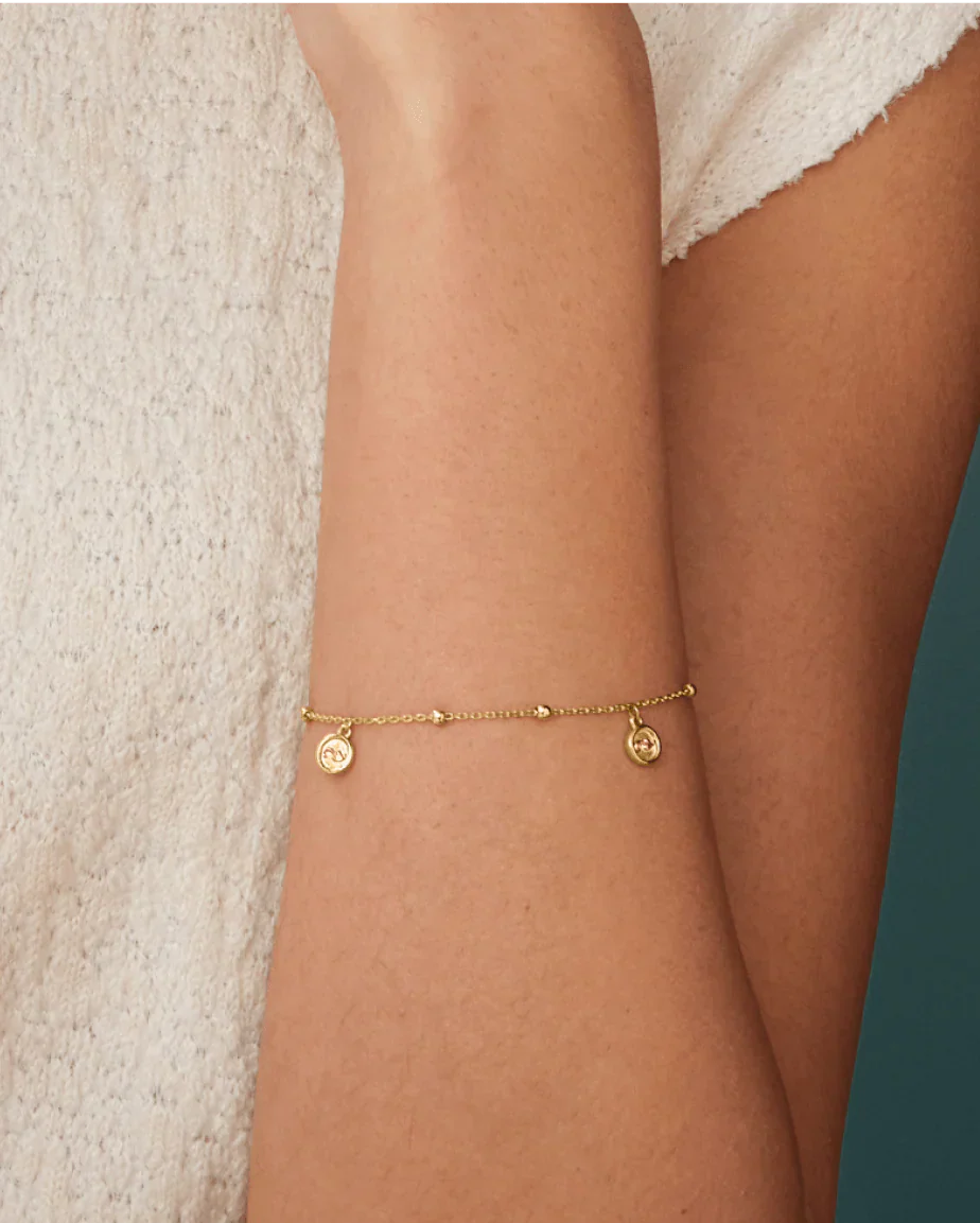 A contemporary take on our classic Tree of Life® collection, the Tree of Life® Insignia Gold Drop Bracelet features a dainty 9ct yellow gold bead chain adorned with circular motifs bearing our signature leaf – signifying creation, growth and renewal – detailed in 9ct rose gold.