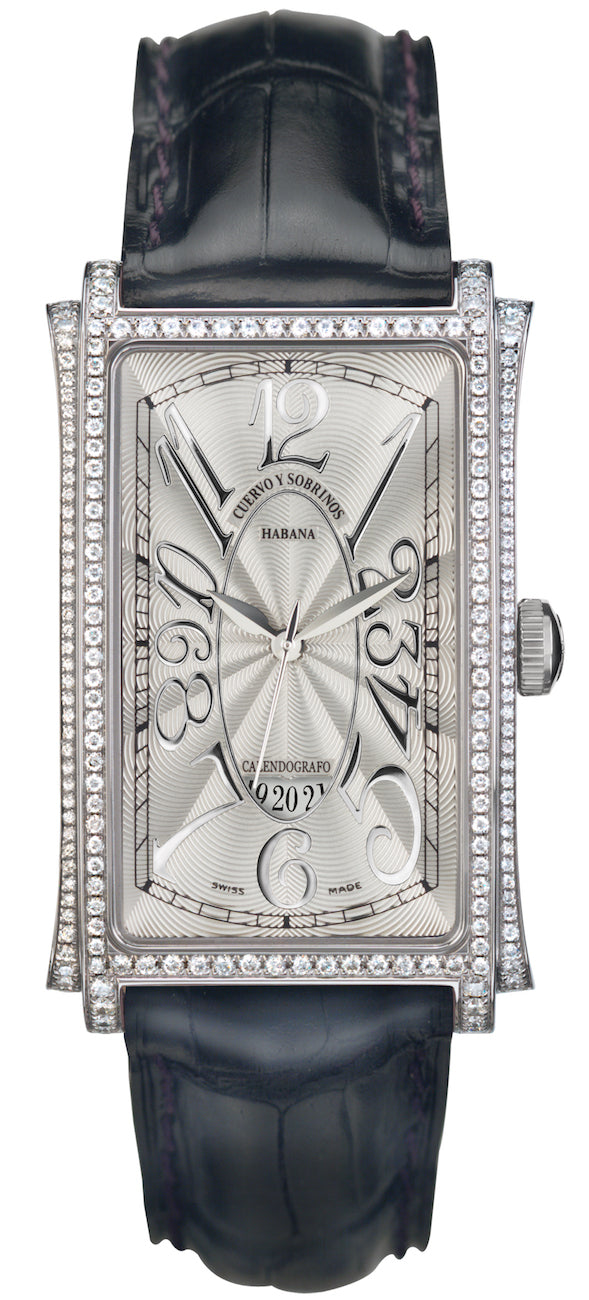 Cuervo y Sobrinos Watch Prominente Solo Tiempo 1012.1AG-SP. Cuervo y Sobrinos watches hold a unique position, a tradition and identity which differentiates the brand created in Havana from any other luxury watchmaking company. Cuervo y Sobrinos is the only traditional Swiss fine watchmaking enterprise which can boast a real and proven Latin heritage.