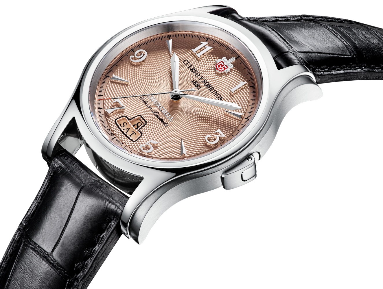 Launched exclusively with C W Sellors Jura Watches, Cuervo y Sobrinos has announced the arrival of this Robusto Churchill Day Date Limited Edition watch which for the first time features a stunning salmon-coloured guilloche dial. The colour embodies the warmth of vibrance of Havana, the city of which the luxury watch brand was established in almost a century and a half ago. At home within the Cuervo y Sobrinos Churchill collection, the limited edition of only 30 pieces also continues to honour one of history’s most distinguished personalities, Winston Churchill, the famous politician who was famous for his love of cigars, Havana and the Cuervo y Sobrinos boutique in the city.