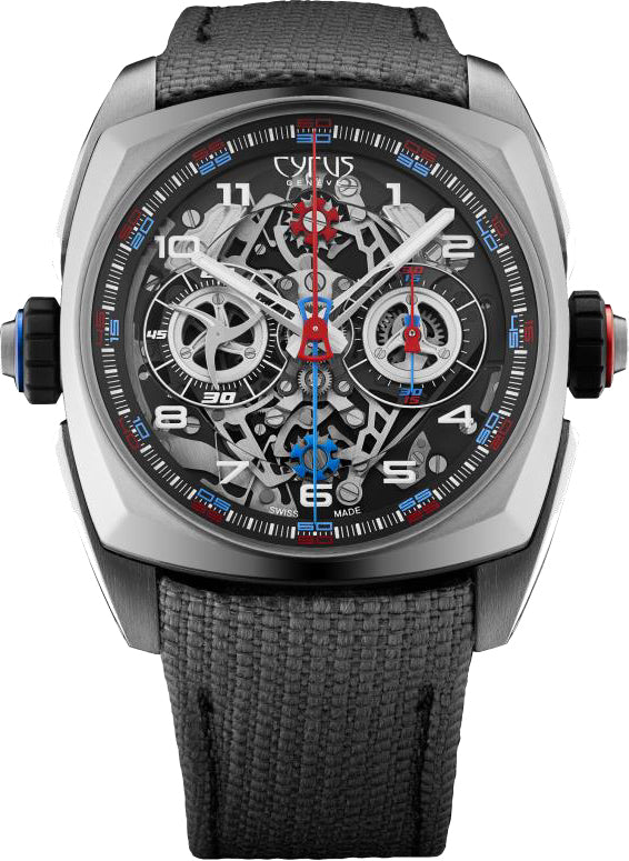 Cyrus Watch Klepcys Dice Titanium Limited Edition 539.508.TT.A. Developed by our master watchmaker Jean-François Mojon, KLEPCYS DICE is an innovative double monopusher chronograph capable of measuring two short intervals of time independently or in synchrony. It should not be confused with the rattrapante version, where the two hands track the time of two events that start simultaneously but end at different times or indicate an intermediate elapsed time.