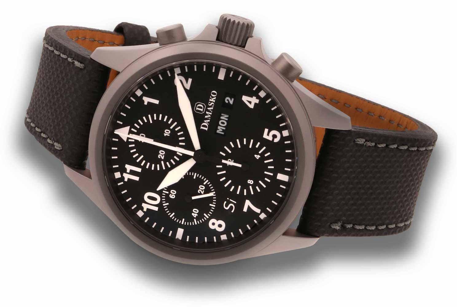 With an exclusive calibre, chronograph functions and luminescent coated markers, the Damasko DC 56 Si watch completely excels all horological expectations without descending to a level of dysfunctional gadgetry. As an evolved model from the standard DC 56, the DC 56 Si showcases silicon components within the movement for improved accuracy and precision.