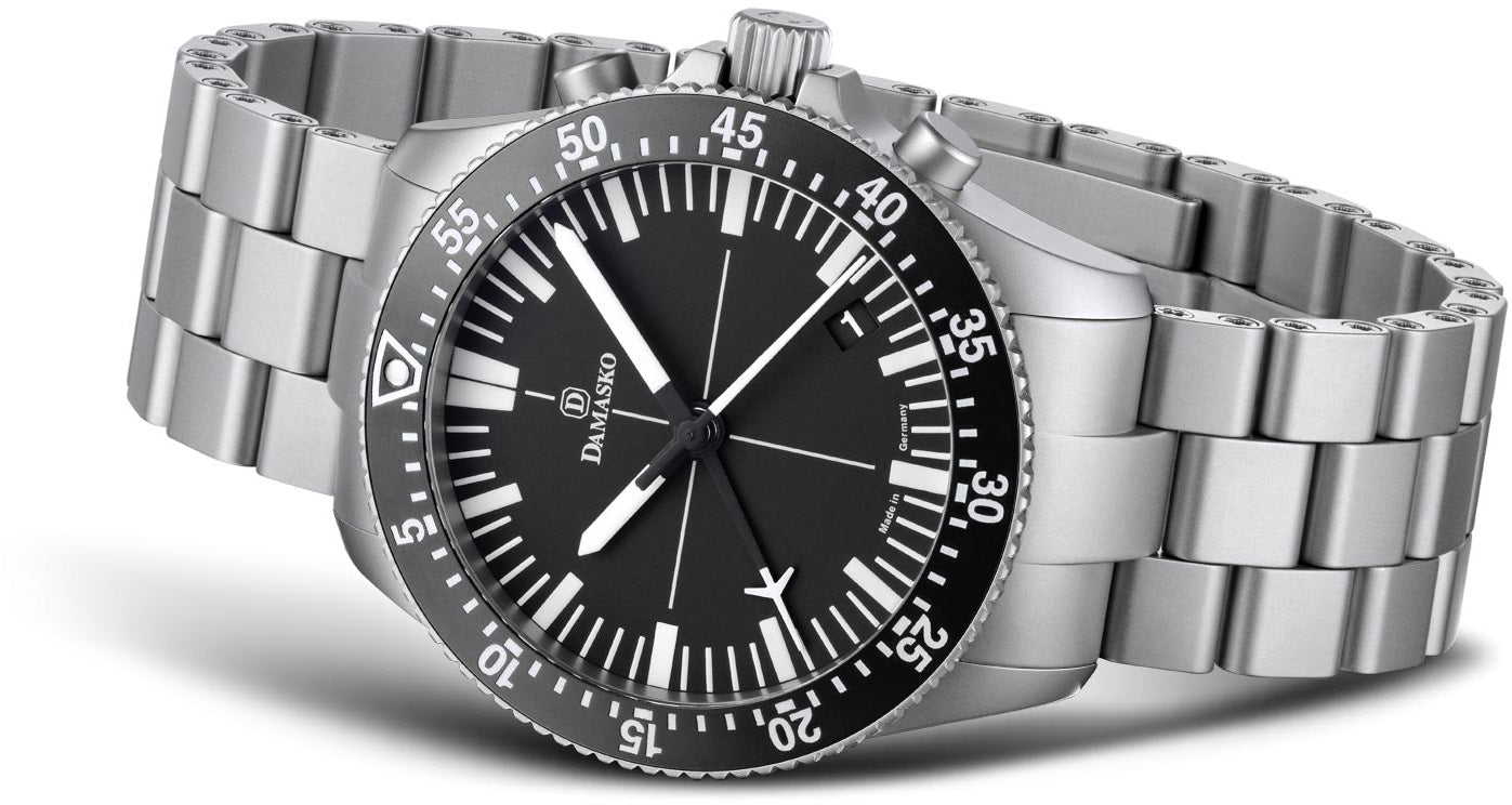 Damasko Watch DC 82 Steel DC 82 Steel. A new chronograph line based on the Damasko watches chronograph calibre C51 is heralded with the DC8X series. A criterion of this development is to increase the readability of the chronograph functions significantly. Here, the historic Lemania 5100 movement acted as a role model. The main focus of the new line is on the technical realisation of a springing 60 stop minute display from the centre. Thanks to this new, patented design, it is possible to record stop times even more easily, accurately and quickly. It offers two key advantages, 60 minutes, instead of the usual 30 minutes, are counted in a hand revolution and the allocated minute stop scale can be seen across the full face diameter.