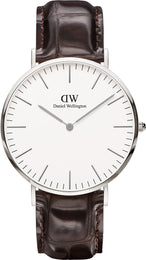 Daniel Wellington Watch Classic 40 York DW00100025. With a beautiful dark brown crocodile leather band, an eggshell white dial and a casing that is just 6mm thin, it is hard not to love this perfectly engineered timepiece. Inspired by a simpler time, this watch was built to stand the test of time.
