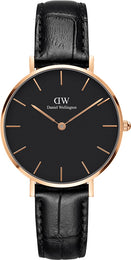 Daniel Wellington Watch Petite 32 Reading DW00100167. The Petite with the all black dial paired with the Reading strap is a gorgeous combination of clean minimalism and timeless croc embossed leather. Black sophistication and style perfection.