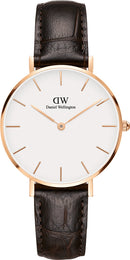 Daniel Wellington Watch Petite 32 York DW00100176. With classic features such as the deep brown croc embossed Italian leather in the York strap and a neat eggshell white dial, this watch will stand the test of time.