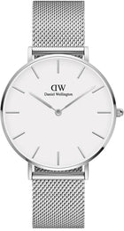 Daniel Wellington Watch Petite Sterling White 36mm DW00100306. The Daniel Wellington watches Petite collection is made by stainless steel, and making the mesh bracelet involves cutting a special type of chain mail to the desired length and width to attain the perfect balance between density and thread count. The resulting Petite is our sleekest timepiece to date, and truly reflects the minimalistic design approach of Daniel Wellington.