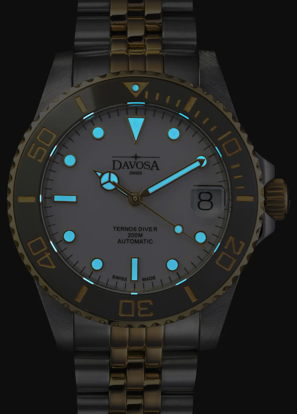 Davosa Watch Ternos Medium Ceramic 166.197.02. Davosa watches are reviving the spirit of the 1960s with the Sixties edition of its popular Ternos divers watch. In this edition, the Swiss manufacturer of high quality mechanical watches focuses not only on materials and design, but also on how the watch feels on the wrist, in a bid to revive the carefree decade during which freedom in lifestyle and fashion became so important.