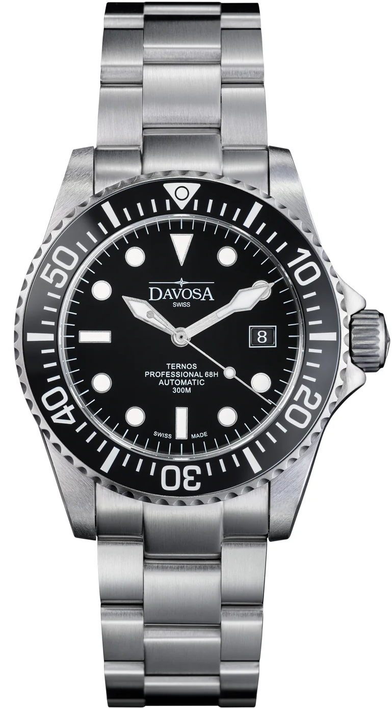 Davosa Watch Ternos Professional 68h Automatic 161.538.50. The Ternos Professional is a diving model that is appreciated by professionals and ambitious amateurs alike for its absolute reliability, excellent workmanship and high functionality. Customer suggestions have been meticulously collected and further developed by DAVOSA's product design team. The result is the DAVOSA Ternos Professional 68h Automatic.