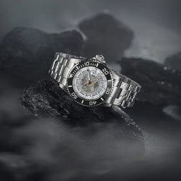Davosa Watch Ternos Professional Nebulous Automatic Misty White 16153510. Swiss watch manufacturer DAVOSA, renowned for its functional divers’ watches, is reinterpreting a classic from its diving collection: a special model of the Ternos Professional is launching with the designation ‘Nebulous’. The Ternos Professional series is specially designed to meet the exigent needs of extreme divers. It displays a very high water resistance of 50 ATM, it is particularly robustly built, and it has an automatic helium valve set at 9 o’clock, which is essential when using a pressure chamber in very deep water.