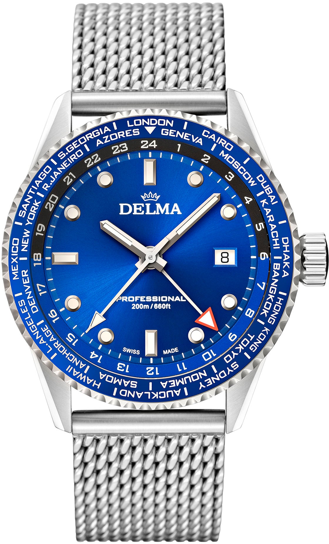 Delma Watch World Timer Quartz 41801.712.6.041. Delma watches ability to deliver innovative and reliable timepieces has always been a result of a dedicated team. To ensure Delma stay up to date with the latest developments in the industry, thier skilled personnel are continuously trained and new equipment is introduced. Together Delma are able to consistently produce timeless watches that evolve with the demands of our clients and our collaboration with exceptional partners.
