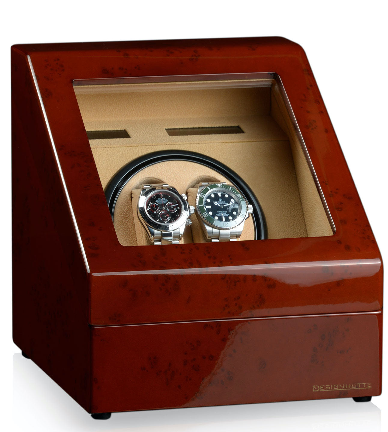 Designhuette Watch Winder Monaco Burlwood 70005-43. Designhuette has impressed watch lovers at home and abroad with high quality watch winders and watch boxes. Through their investment in modern production techniques, new and innovative products are constantly being developed and brought into being. The sporty and elegant design as well as the excellent price performance ratio of this brand are just two of the reasons to make a decision in favour of a Designhuette watch winder.