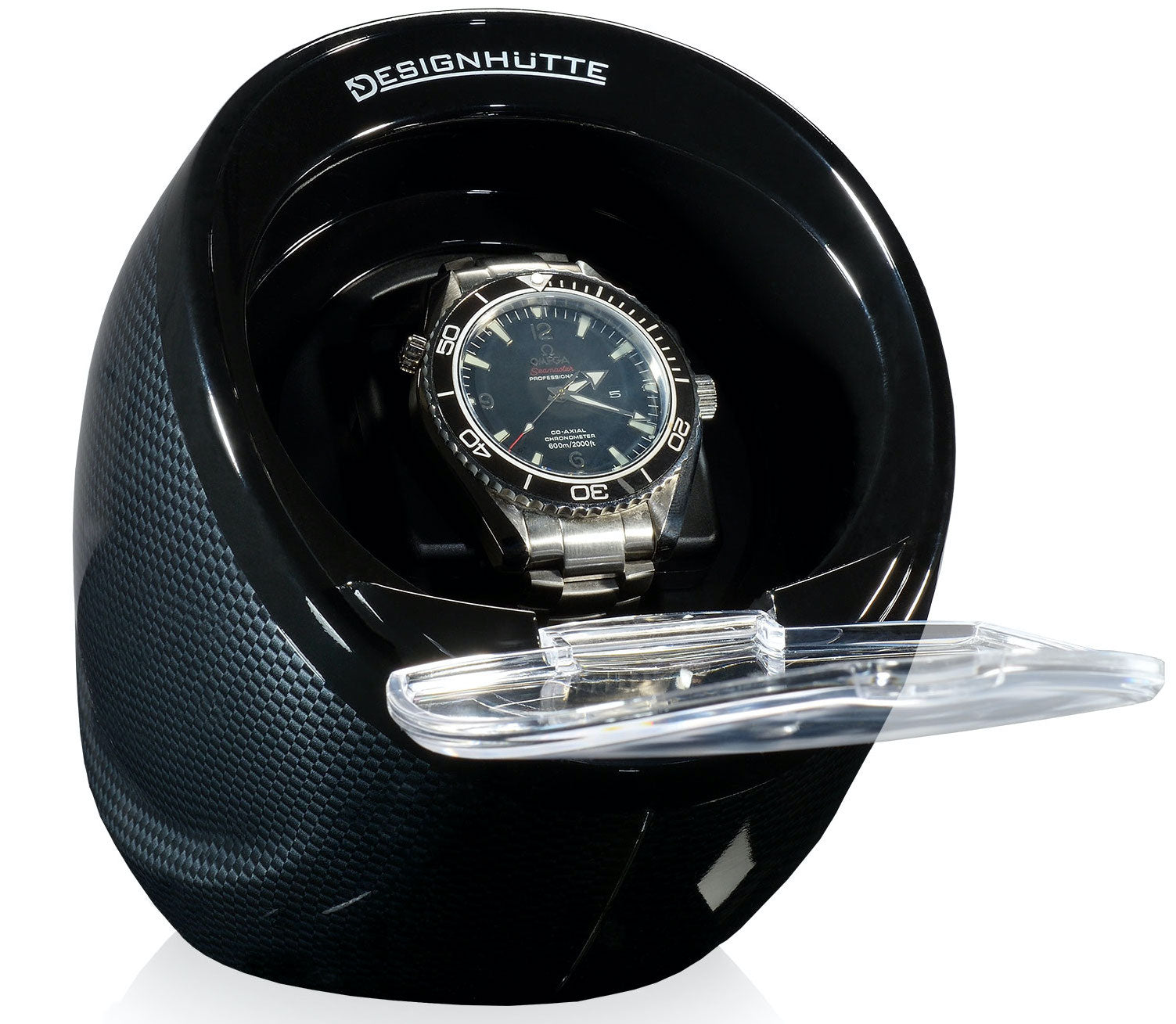 Designhuette Watch Winder Optimus Carbon 70005-116. Designhuette has impressed watch lovers at home and abroad with high quality watch winders and watch boxes. Through their investment in modern production techniques, new and innovative products are constantly being developed and brought into being. The sporty and elegant design as well as the excellent price performance ratio of this brand are just two of the reasons to make a decision in favour of a Designhuette watch winder.