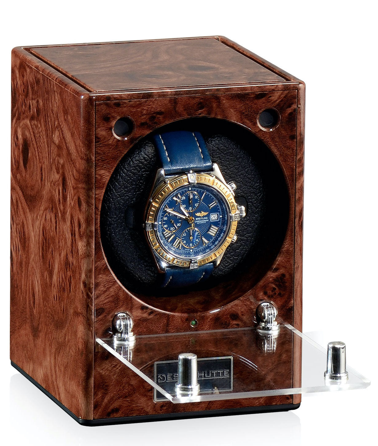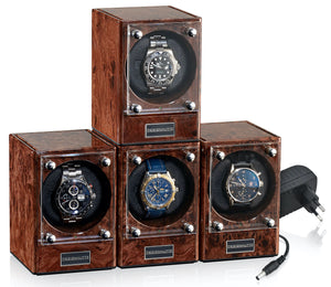 Designhuette Watch Winder Piccolo Starter Kit 4 Burlwood 70005-106. Designhuette has impressed watch lovers at home and abroad with high quality watch winders and watch boxes. Through their investment in modern production techniques, new and innovative products are constantly being developed and brought into being. The sporty and elegant design as well as the excellent price performance ratio of this brand are just two of the reasons to make a decision in favour of a Designhuette watch winder.