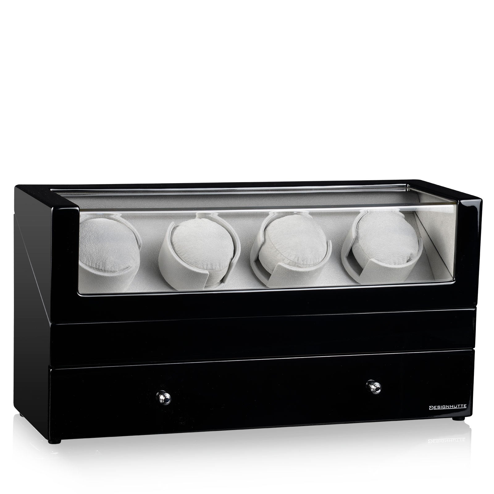 Designhuette Watch Winder San Diego 4 Black 70005-55. Designhuette has impressed watch lovers at home and abroad with high quality watch winders and watch boxes. Through their investment in modern production techniques, new and innovative products are constantly being developed and brought into being. The sporty and elegant design as well as the excellent price performance ratio of this brand are just two of the reasons to make a decision in favour of a Designhuette watch winder.