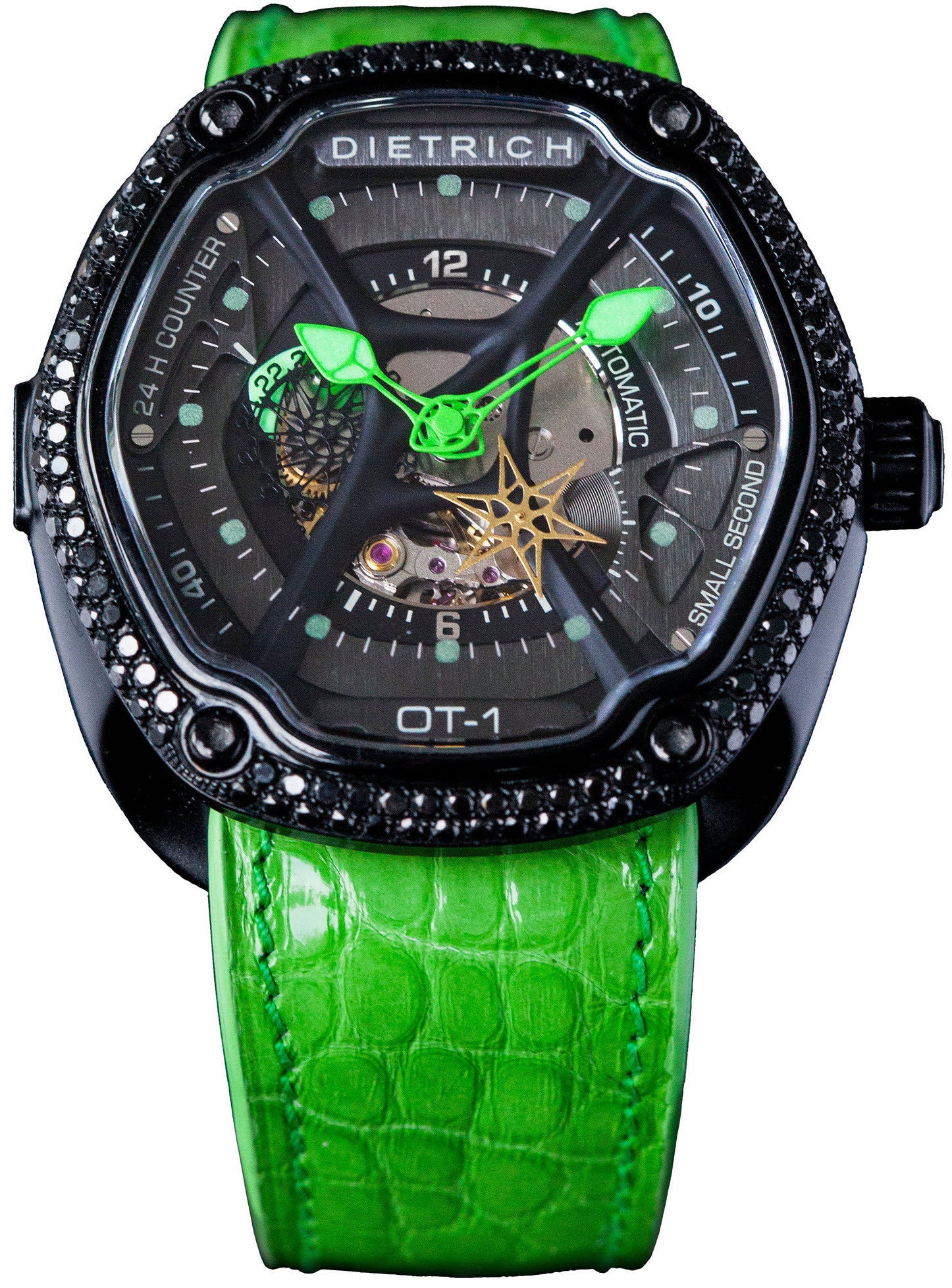 Dietrich Watch OT-1 Black Diamonds. As a fairly new brand to the world of watches, Dietrich has already kicked things off with a bang. The Dietrich OT watches are without a doubt one of the most unique and fascinating watch collections around. The OT, or Organic Time range, was inspired by the unusual textures and geometric shapes found in nature, giving a certain futuristic and sci fi vibe to the timepieces. The remarkable and complex designs truly showcase the genius of Dietrichs designers.
