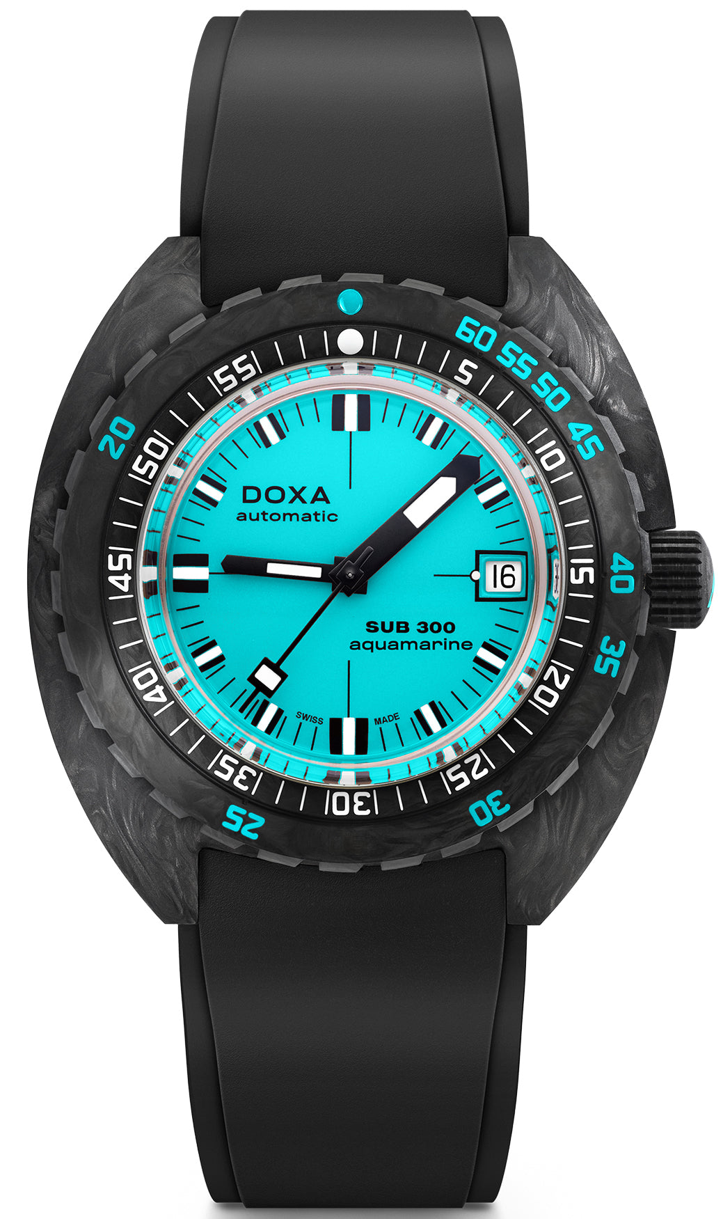 Doxa Watch SUB 300 Carbon COSC Aquamarine Rubber 822.70.241.20. The world over and across generations of divers and adventurers. DOXA SUB watches stands for the benchmark for diving watches, greatly contributing to the safety of professional and sports divers thanks to the many technical details they introduced.