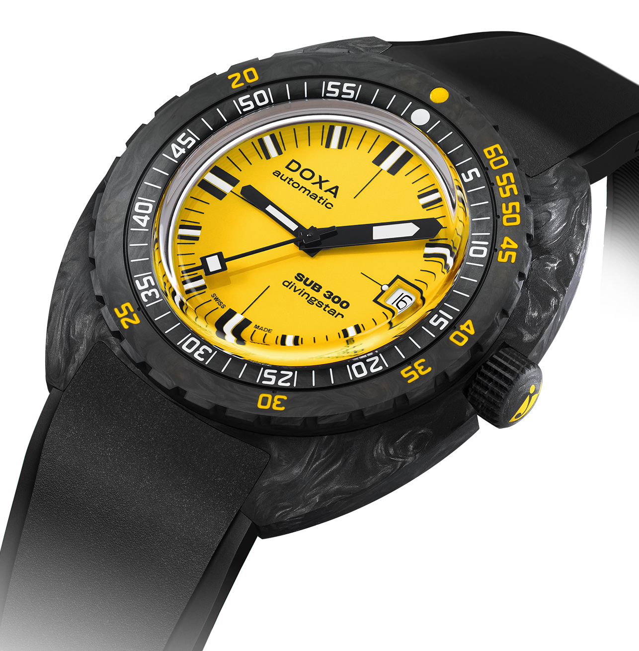 Doxa Watch SUB 300 Carbon COSC Divingstar Rubber 822.70.361.20. The world over and across generations of divers and adventurers. DOXA SUB watches stands for the benchmark for diving watches, greatly contributing to the safety of professional and sports divers thanks to the many technical details they introduced.