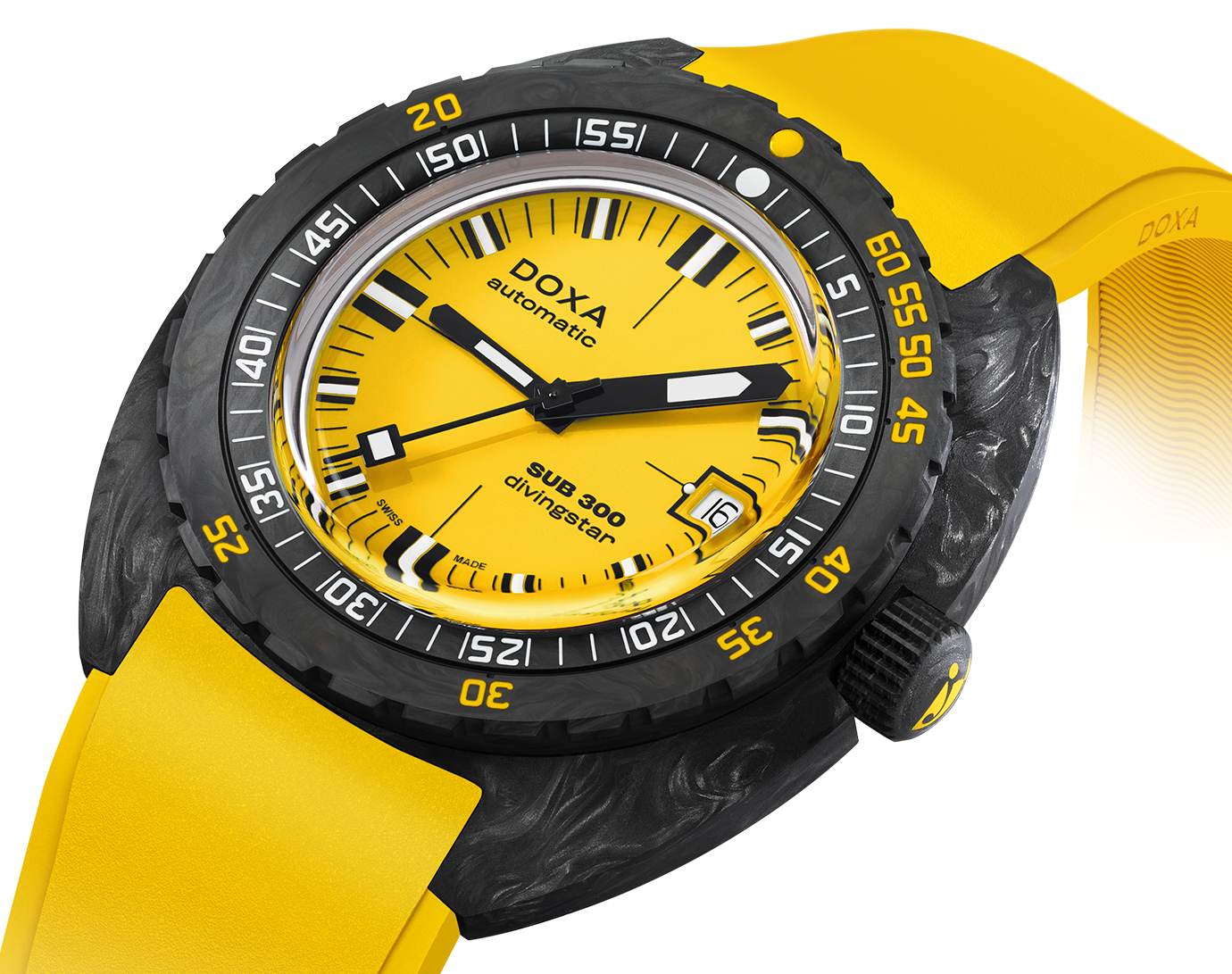Doxa Watch SUB 300 Carbon COSC Divingstar Rubber 822.70.361.31. The world over and across generations of divers and adventurers. DOXA SUB watches stands for the benchmark for diving watches, greatly contributing to the safety of professional and sports divers thanks to the many technical details they introduced.