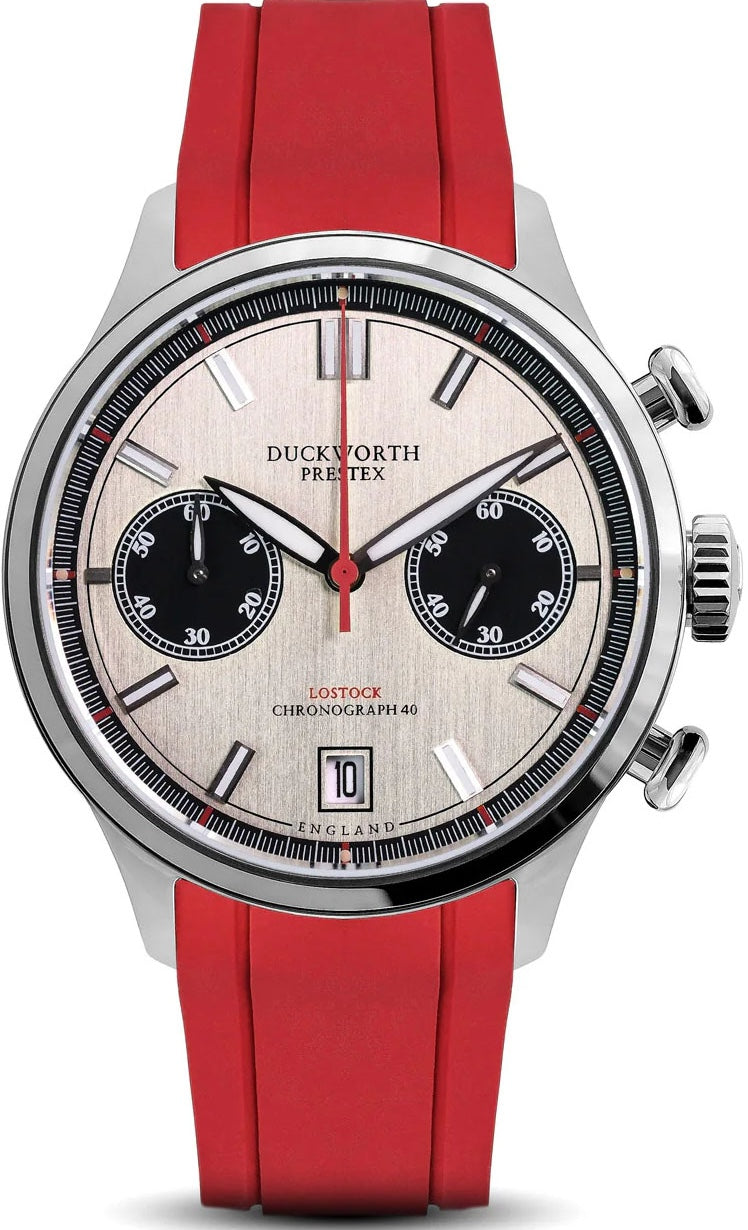 Duckworth Prestex Lostock Silver 40mm Quartz Chronograph Red Rubber Watch