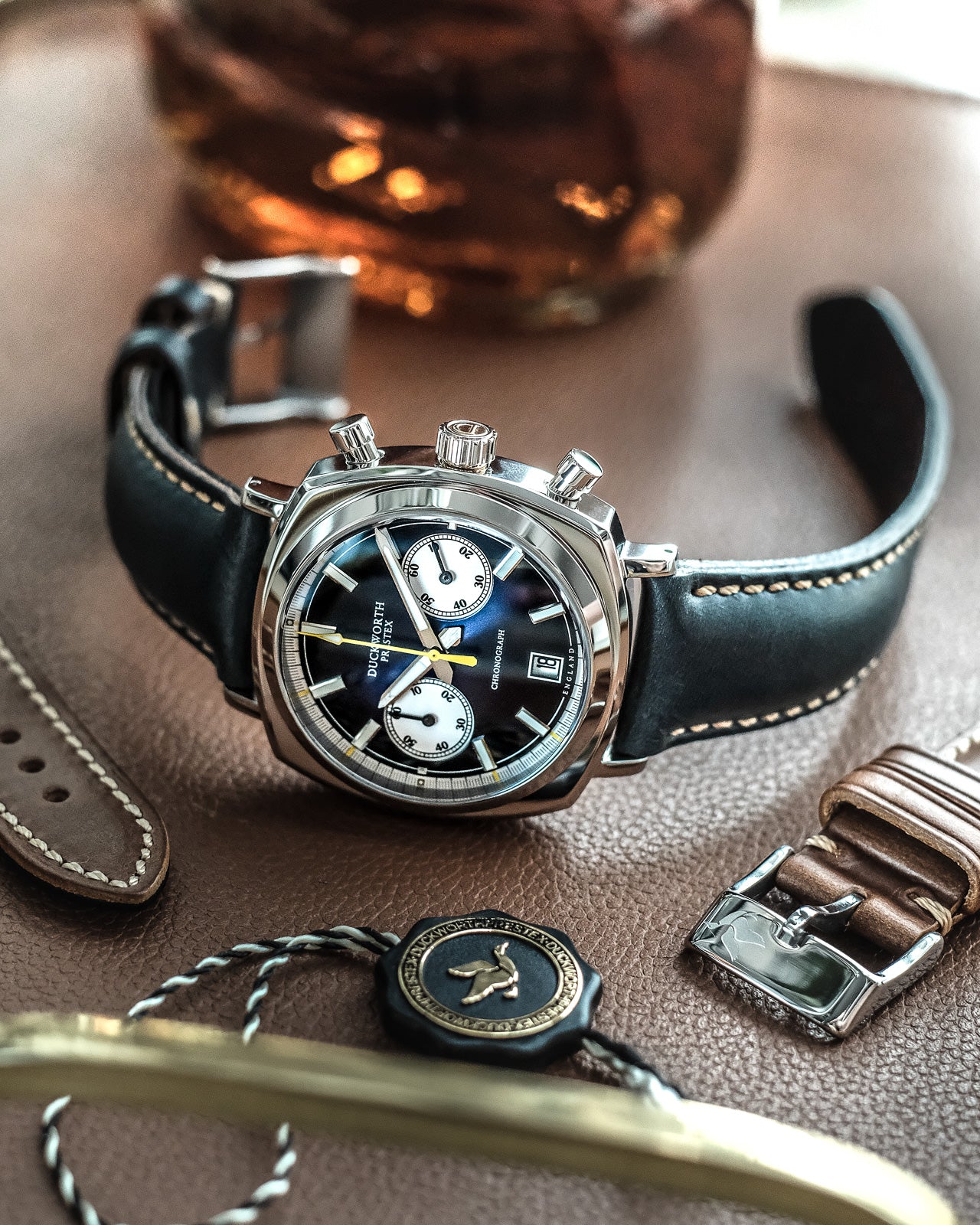 Duckworth Prestex Chronograph 42 Blue Sunburst Blue Leather Watch