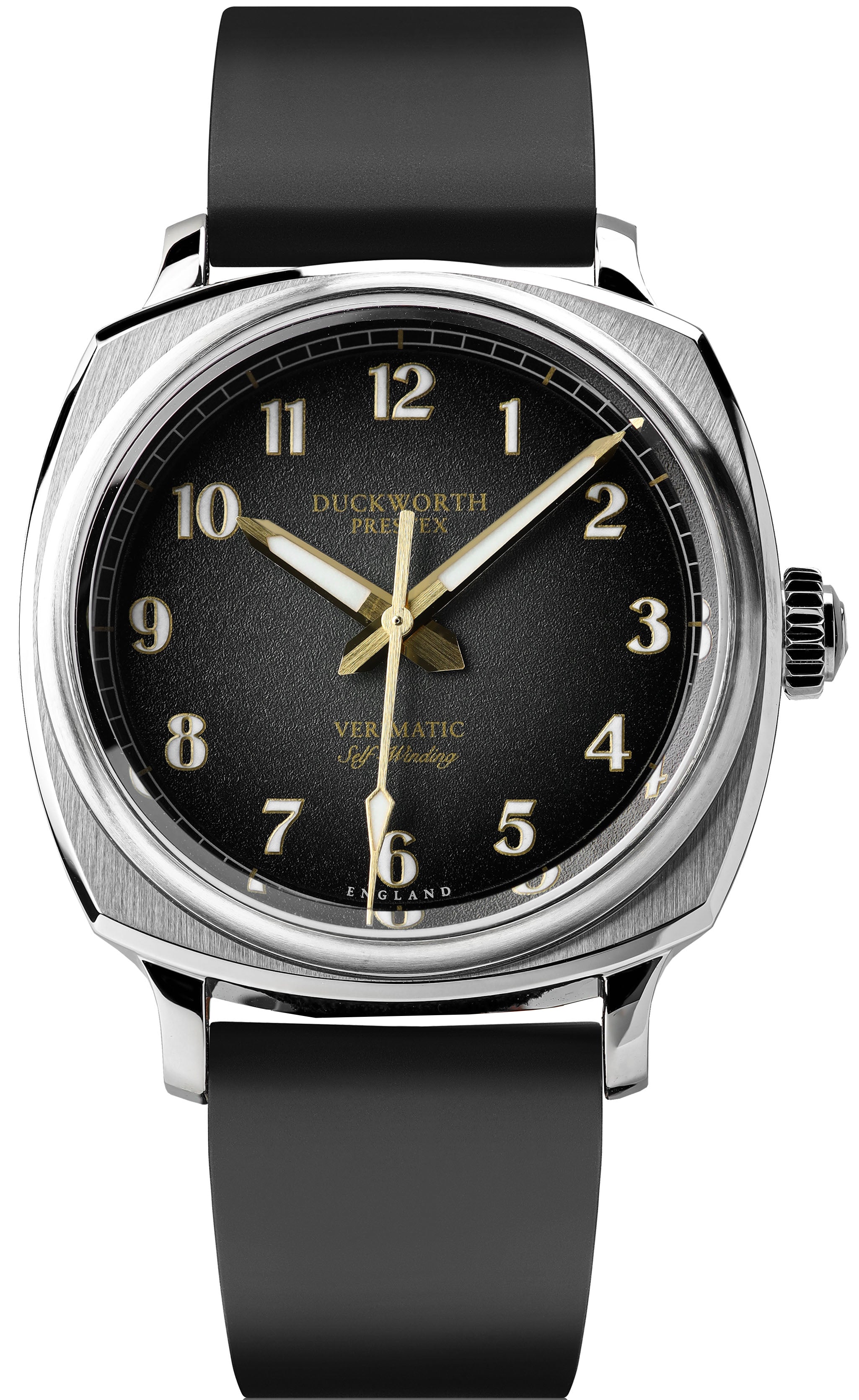 Duckworth Prestex Watch Verimatic Black Black Rubber D891-01-AR. Duckworth Prestex watches may sound like a new name, but it goes back a very long time in the history of watchmaking. Nearly 100 years in fact. Neil’s family firm, Prestons, was originally founded in 1869 in Bolton and by the 1920s it was making its own pocket watches under the Prestex name, which enjoyed tremendous success all over the world. Over the next few decades, Prestex produced a variety of timepieces including chronographs, pocket watches and some stunning dress watches.